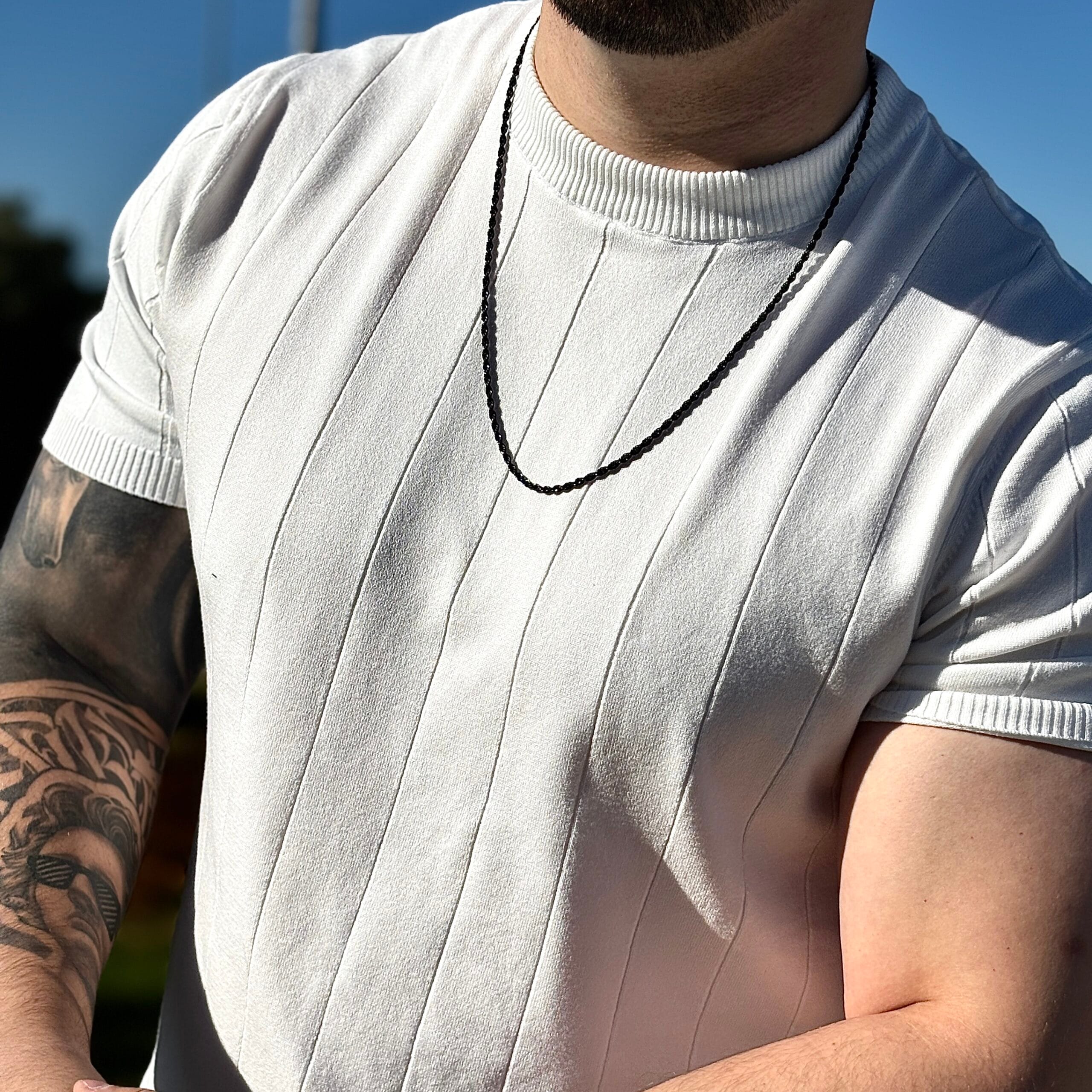 Gabaryty tego projektu zaplanowaliśmy z ogromną uwagą. Zgrabny profil w obu dostępnych grubościach pozwala na swobodne noszenie ozdoby pod koszulą. Łańcuszek w czarnym wydaniu kapitalnie przełamuje utarte, modowe schematy. Odcinamy się całkowicie od nudnych form oferowanych w masowych sklepach. Wybór tego skręcanego detalu jednoznacznie potwierdza Twój oryginalny styl. Ozdoba wspaniale odnajdzie się w luźnym, miejskim klimacie.